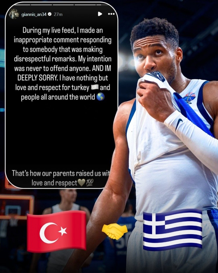 9月17日讯 字母哥更新社媒,为在自己此前在直播中对土耳其球迷的不当言论道歉。