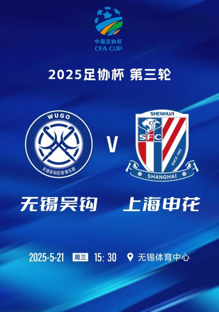 无锡吴钩足协杯主场对阵申花票务公告,今晚6点主队票开放