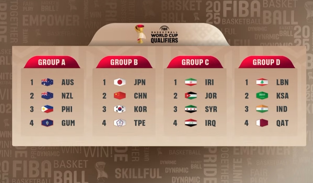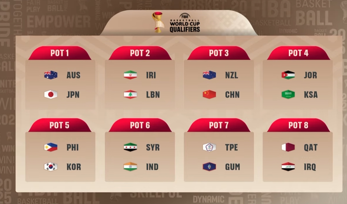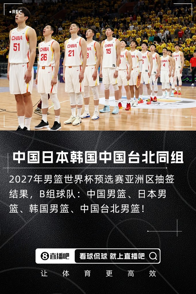 2027年男篮世界杯预选赛抽签:中国&日本&韩国&中国台北同组