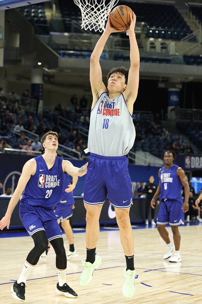 即使三人中有两人回归,增加中锋位置的深度也不是一个坏主意。 尽管杨瀚森没有像其他新秀那样受到广泛关注,但他依然具备出色的篮球能力,并且他的比赛风格非常吸引人。他最突出的能力是传球。这位身高七英尺一英寸的大个子拥有出色的视野和愿意传球的态度。他经常能够在低位为队友创造机会,善于利用无球跑动者的切入,并且在中国国家队中也担任过进攻核心。