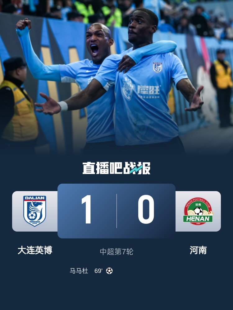 4月16日讯 北京时间4月16日19:00,中超联赛第7轮大连英博迎战河南的比赛在梭鱼湾专业足球场进行,上半场卡多索头球中楣+抽射造险,大连仅1射正,半场结束,大连0-0河南队。下半场马马杜头球破门打破僵局,最终大连1-0河南近4轮首胜,河南近6轮仅1胜。