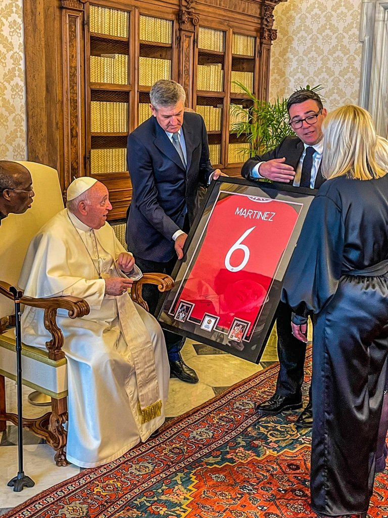 伯纳姆在接受BBC采访时表示:“马丁内斯对来自自己国家的教皇的看重是显而易见的,能够在梵蒂冈送出这份礼物是一件很重要的事情。”