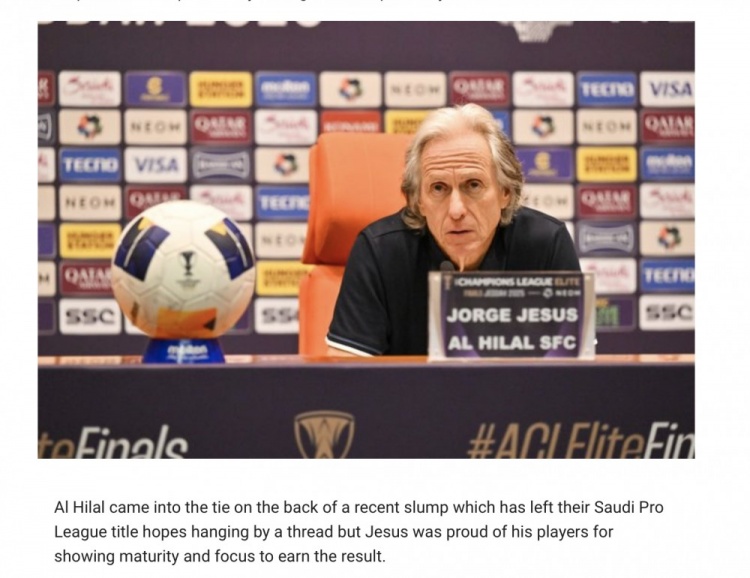 近期利雅得新月的状态遇到波动,沙特国内联赛夺冠希望变得岌岌可危,但热苏斯对弟子们在关键战中展现的成熟与专注表示赞赏。"我们在联赛中承受着巨大压力,但球员们仍保持着高度专注力。"