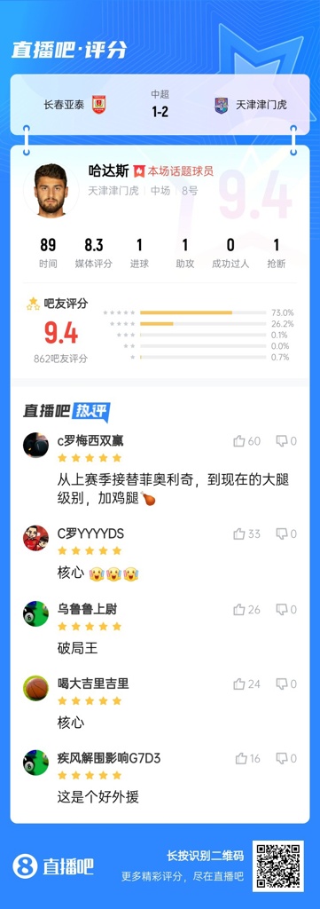 【】中超第四轮最佳球员:基莱斯当选,为了天津永远进攻!