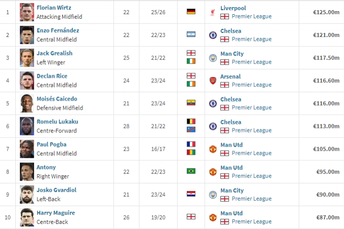 与此同时,这笔9500万欧元签下埃基蒂克的交易,在英超引援记录中也能够排名并列第8,与曼联在22/23赛季签下安东尼相同。